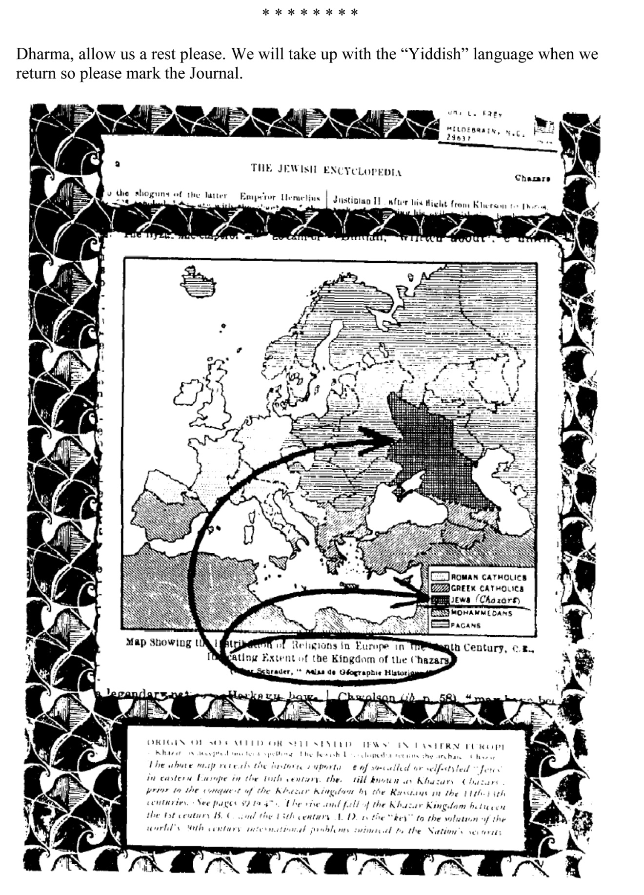 JUDAISM IS CHOSEN AS THE RELIGION OF THE KHAZARS DOMINATION BY THE KHAZAR ZIONISTS ZIONISM PROGRESSES INTRODUCTIONREC #1 HATONN TUESDAY, MARCH 5, 1991 8:47 A.M. YEAR 4, DAY 201 The action has been so subtle and so “creeping” in its slithery nature that you ones have not seen it coming nor the lethal bite of the serpent. But the poison has penetrated the globe and the death rattle is heard throughout the lands. I am not going to write more in this INTRODUCTION to the subject for the subject of this Journal is an ongoing outlaying of that which has come upon you--it is our “commission” given forth by God Creator and our commitment unto Him and that unto Creation to set the records to straight so that the truth is known in the final days. But oh, blessed brothers--it needs not be the “final days” for that is the BIGGEST LIE OF ALL AGAINST YOU DECEIVED ONES OF INNOCENCE--YE WHO HAVE TRIED TO FOLLOW THAT WHICH YOU PERCEIVED AND ACCEPTED AS TRUTH FROM YOUR TEACHERS AND LEADERS--HOW COULD YOU KNOW THAT THEY WERE DISINFORMED FROM EVIL SOURCES? MAY GOD GIVE HELP TO ALLOW YOUR VISION TO CLEAR THAT WE MIGHT WALK TOGETHER IN TURNING ABOUT THIS BEAST AND CLEAR IT FROM THE LANDS. AHO! I ask that a letter received this very morning be put into this segment. The “Dr.” has asked to remain anonymous for obvious reasons and that is honored--the letter will be copied verbatim. Dear Hatonn, It seems like a lot of people know about this treachery and evil in our U.S. gov’t, such as “THE SPOTLIGHT”, NORD DAVIS & C.B. BAKER’S PUBLICATIONS, “FOR THE PEOPLE” radio (950 am), etc., etc.! I am copying and mailing your materials and others like crazy--as much as I can & I am encouraging others to do the same. BUT--it seems like the old times are repeating themselves & nothing is changing. Those of evil intent are still doing what they will & are in control. There’s a so-called “Cease fire” now & it looks as if another puppet gov’t is going to be installed in Kuwait--WITH OUR MONEY & the controllers are rolling right along. Just like always, just like history. People will continue to talk & write about the TRUTH, but the stark, old reality we always end up living with is what those in control decide. What are we to do? I’ve heard that we killed over 200,000 Iraqi people (in Baghdad), 112,000 were civilians and 70,000 of those were children--70,000! 70,000! 7-0! Over 200,000 TOTAL! And Americans are going to go happily along blindly waving their yellow ribbons like swastika’s, enjoying their lives as they trot off to the malls, movies, restaurants and vacations. But not for long, I suspect. This is going to snap back on us for letting this happen. I wonder how many Americans prayed for those Iraqi people, Palestinians or Lebanese who in God’s eyes and should be in OUR eyes--are our brethren. My God, Hatonn--I can’t even think -- begin to think what 70,000 (seventy thousand) children look like lined up in a row, let alone 200,000. The line would be so long, it is beyond my imagination right now. This is Horrid! What we are experiencing on this planet is not LIFE--REAL LIFE. The sweetness, love and beauty of God’s creation is right before our eyes, in every single leaf, if we look. We are sleepwalking; our bulbs are dim. My God, how did it come to this? I notice you address some who write to you, even the ones who attack you, as “Precious”. That is so beautiful and is how we all should regard each other and all life. Well, I want to extend my love to you, Hatonn, & thank you for everything. I want to say you, too, are precious unto me--UNTO US. I am ashamed of this country and this planet and I thank you for your help and information. I hope I can meet you someday and welcome you with open arms as brethren standing straight and tall IN HONOR, INTEGRITY AND LOVE in the Radiance of God upon a placement on this beautiful orb in the cosmos whose culture is deeply involved in living the Peace, Love and Serenity of our Creator. I Love you, CJM. P.S. I give permission to publish this only if Hatonn wants to do so. Please withhold my name. * * * The very Light of God rests upon you for as ONE sees--the rest can be led. And so it shall come to pass for in the days ahead the TRUTH SHALL “OUT” and when the evil can no longer hide in his dark places--Man will “remember” and set to right that which he has allowed and committed in the darkness and he shall again rise as the Phoenix from that which was the evil of the damned and fly again upon these wondrous wings with the cosmic brothers and children of God’s tribes. But to change of a thing which is battered and broken--one must know that which IS and then, only then, can the machinery be repaired and reclaimed. And so it shall come to pass for as God and The Creation are ONE, and so we too are of THAT ONE--it is not over until GOD WINS! And furthermore, God will win for so is it written that it shall be so and when all these other things have come to pass in the final cycle of days upon a weary and battered world--GOD SHALL BE TRIUMPHANT AND HIS PEOPLE SHALL BE SUSTAINED IN PEACE AND BROTHERHOOD AND THE LAMBS SHALL BE GATHERED WITHIN THE FOLD AND NURTURED ACCORDING EACH UNTO HIS NEEDS. FOR THIS IS THE PROMISE OF GOD. AND THE TRUTH SHALL BE SENT AND BROUGHT FORTH UNTO THE FOUR CORNERS OF THE WORLD THAT MAN CAN SEE AND KNOW--AND CHOOSE HIS PATH UNTO LIFE OR UNTO DEATH. AND SO AS IT IS WRITTEN WILL IT COME TO PASS IN THE DAYS OF THIS GENERATION UPON THE LANDS CALLED EARTH-SHAN AND SHE, SHAN, SHALL RAISE UNTO HER PLACE OF HIGHER GLORY AMONG THE SHIPS OF THE UNIVERSE. THAT WHICH IS SICK SHALL BE NURTURED AND HEALED IN THE CRADLE OF GOD’S TIMELESS, SPACELESS BEING AND THE BIRTHING INTO THE RADIANCE SHALL BEYOND ALL IMAGININGS--FOR I HAVE BEEN THERE, I HAVE SEEN IT AND I HAVE LIVED IT! SO BE IT! Gyeorgos Ceres Hatonn In total service unto the HOSTS sent forth from HOLY GOD in and for preparation for HIS COMING AGAIN UPON THE TER