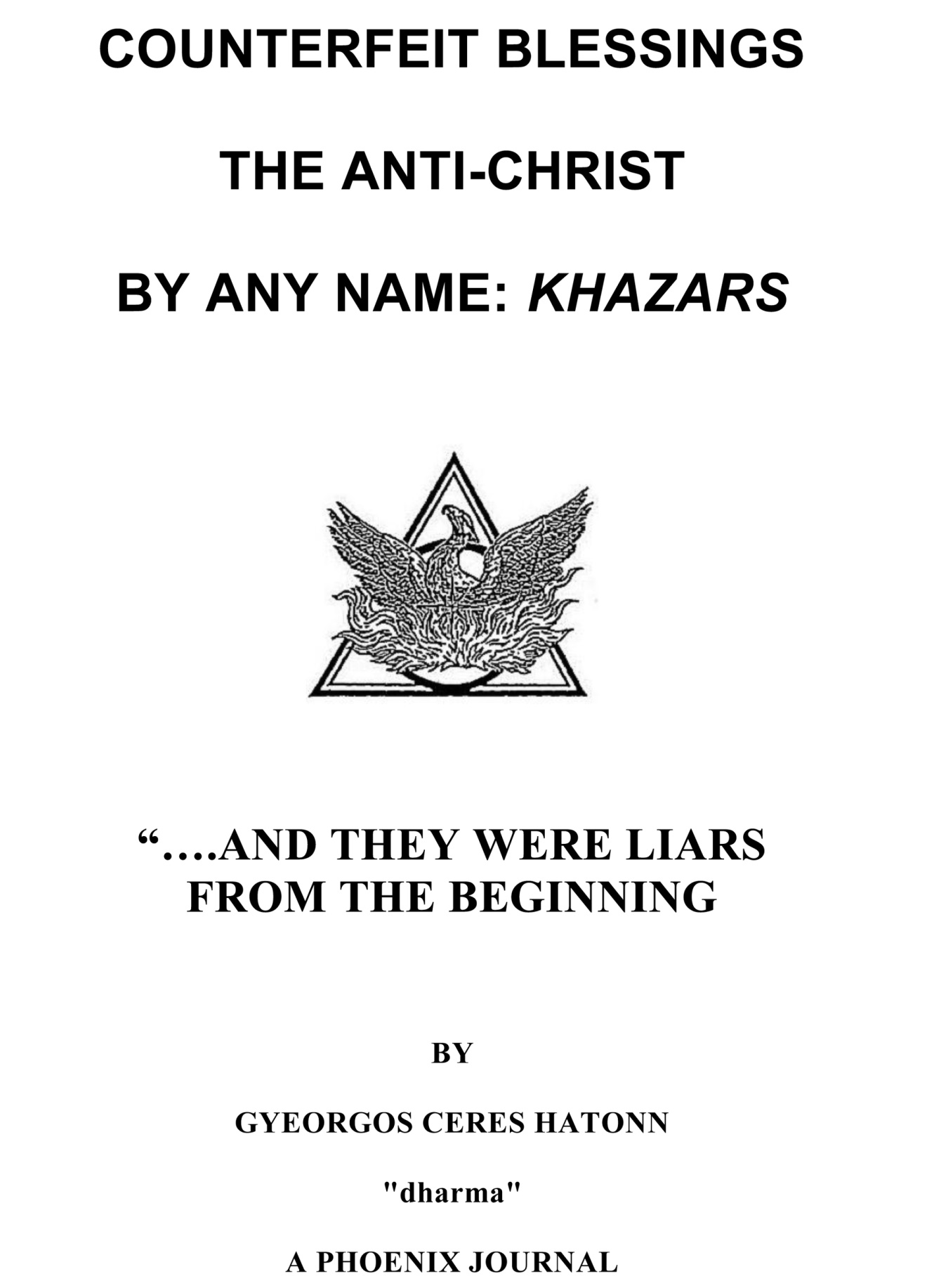 GOOD FRIDAY EASY TO DOCUMENT FORSTER WRITES LETTERS BIGOTED EXTREMISTS OIL IS MENACE POOR VANESSA REDGRAVE AND JUSTICE FOR SOME INTRODUCTIONREC #1 HATONN SATURDAY, MARCH 30, 1991 7:23 A.M. YEAR 4, DAY 226 If you encounter a fowl species which weighs some 18 pounds, has a flat and rather large bill (not beak), waddles when it walks, has webbed feet and has been spray-painted blue, can you not safely say this is probably a duck or a goose? Ah, but now, it "quacks" exactly like a duck--not a goose and you see that the feather shaft is indeed white and the forensic studies of the blood and feathers pronounce the species a DUCK--can you not PROBABLY work from the standpoint that it is likely a duck and not the bluebird of happiness which you are TOLD TO ACCEPT AS IDENTIFICATION? I ask that the "TERMINOLOGY" list be placed in front of the first chapter of this book. CORRECT DIAGNOSIS OF DIS-EASE How does a professor of Disease Control make diagnosis of disease? Does he not take all the symptoms of the illness and carefully analyze each and every one? Then does he not begin to rule out all causative organisms which do not produce like symptoms of the illness at point? Then does he not begin to effort to isolate all present organizisms within the sick host? Next, if he has not found anything "outside and visible" in the blood/cellular system--does he not then go "within" the cells (as with the HIV virus) and isolate the PROBABLE beast and continue to study characteristics until he isolates the disease cause beyond all shadows of doubt? Can you not then begin to analyze this organism under the various slide stains and various organisms of identical nature garnered from historical data and various locations of identical disease and symptoms? Would the professor not soon learn that the VIRUS is NOT a COCCI or BACILLUS? Can he not then, beyond a shadow of a doubt, say the organism is a virus EVEN IF OTHERS PRONOUNCED IT PREVIOUSLY TO BE A BACILLUS? What would you call this error in identification? Either an error in identification--OR A LIE BY DECEPTION, whichever is appropriate; but, you would STOP TREATING THE DISEASE AS IF IT WERE CAUSED BY A BACILLUS!!! WHAT HAVE WE HERE? If you have a group of warriors of Mongol, Russian and Nordic bloodline who march across the nations like a bad case of deadly plague, stealing religions, territories and falsifying everything they touch through change by deceit, and their name is "KHAZAR", is it not possible that you would keep a steady and constant lookout for Khazars any time you have a similar problem within the nations? You must understand that by changing names of the duck by calling it a bluebird changes not the duck. Neither does changing the name of KHAZAR to any other label or religion (to corrupted Judean) change the Khazarian. To clarify Dharma, we must reprint an old lesson on the rise of the Khazars so there is understanding--beyond the shadow of a doubt! Quoting primarily from THE THIRTEENTH TRIBE by Arthur Koestler: About the time when Charlemagne was crowned Emperor of the West, the eastern confines of Europe between the Caucasus and the Volga were ruled by a state known as the Khazar Empire. At the peak of its power, from the seventh to the tenth centuries, AD, it played a significant part in shaping the destinies of medieval, and consequently of modern, Europe. Now, if they were at the peak of their power during this time, is it not logical and reasonable that they were around before that time? (quack, quack) The Byzantine Emperor and historian, Constantine Porphyrogenitus (913-959), was well aware of this when he recorded in his treatise on court protocol that letters addressed to the Pope in Rome, and similarly those to the Emperor of the West, had a gold seal worth two solidi attached to them, whereas messages to the King of the Khazars displayed a seal worth three solidi. This was not flattery, but Realpolitik. In the period with which we are concerned, the Khan of the Khazars was of little less importance in view of the imperial foreign policy than Charles the Great and his successors. The country of the Khazars, a people of Turkish stock, occupied a strategic key position in the vital gateway between the Black Sea and the Caspian, where the great eastern powers of the period confronted each other. It acted as a buffer protecting Byzantium against invasions by the lusty barbarian tribesmen of the northern steppes--Bulgars, Magyars, Pechenegs, etc. --and, later, the Vikings and the Russians. But equally, or even more important both from the point of view of Byzantine diplomacy and of European history, is the fact that the Khazar armies effectively blocked the Arab avalanche in its most devastating early stages, and thus prevented the Muslim conquest of Eastern Europe. LITTLE SUMMARY The Khazar country...lay across the natural line of advance of the Arabs. Within a few years of the death of Muhammad (AD 632) the armies of the Caliphate, sweeping northward through the wreckage of two empires and carrying all before them, reached the great mountain barrier of the Caucuses. This barrier once passed, the road lay open to the land of eastern Europe. As it was, on the line of the Caucuses the Arabs met the forces of an organized military power which effectively prevented them from extending their conquests in this direction. The wars of the Arabs and the Khazars, which lasted more than a hundred years, though little known, have thus considerable historical importance. The Franks of Charles Martel on the field of Tours turned the tide of Arab invasion. At about the same time the threat to Europe in the east was hardly less acute... The victorious Muslims were met and held by the forces of the Khazar Kingdom...It can...scarcely be doubted that but for the existence of the Khazars in the region north of the Caucasus, Byzantium, the bulwark of European civilization in the east, would have found itself outflanked by the Arabs, and the history of Chri